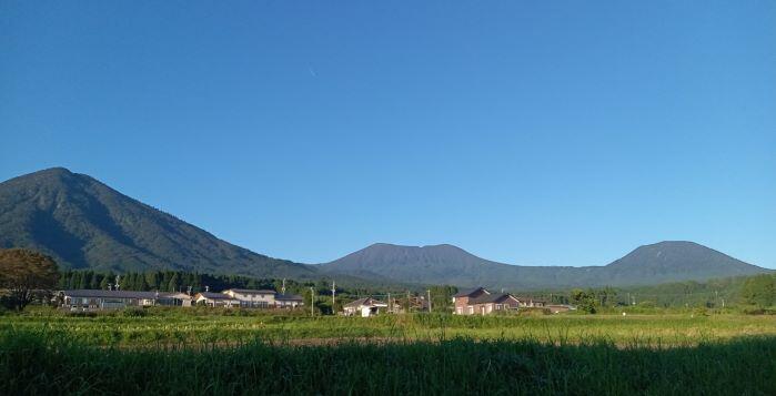 さて、ここのところ暑い日が続いています。きれいな青空が見えるのは嬉しいのですが、気温が高くならないように願います。この日の朝の高千穂峰と幸ヶ丘三岳です。朝のうちは空気が澄んでいるように感じます。(高千穂峰を少しアップで撮りました。)
