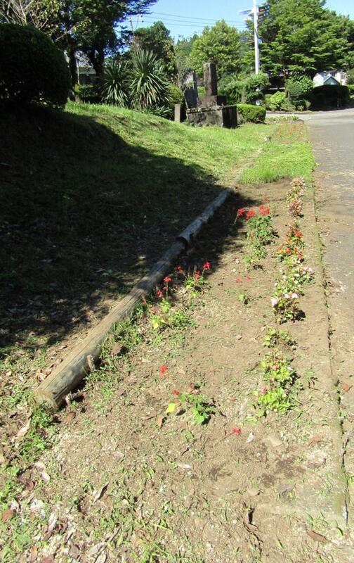 花壇も子どもたちのおかげできれいになりましたよ。しかし、いも畑は量が多くて、結局、2つの畝のうちの一つ、