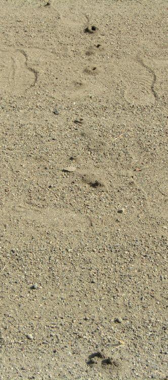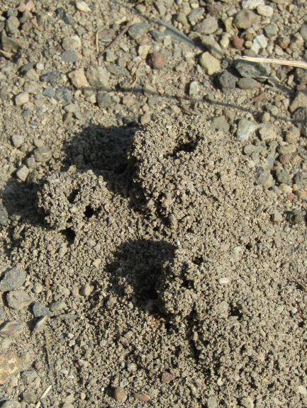 ふと、トラックを見ると、なにやら穴の開いた塊が・・・・、一直線に並んでいました。アリさんが作ったのでしょうか?