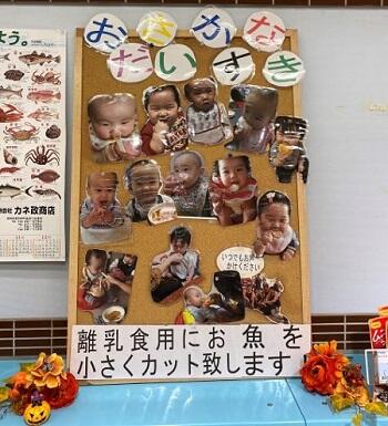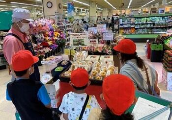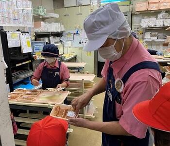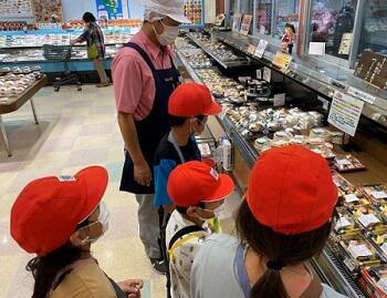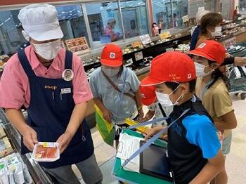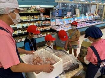 コープに着きました。おさかなコーナーを見学します。説明を聞いて、メモします。