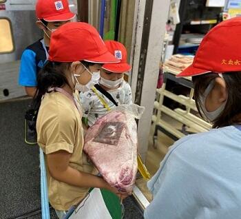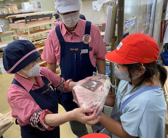 お肉の塊、ブロックを持たせてもらいました!(#^^#)