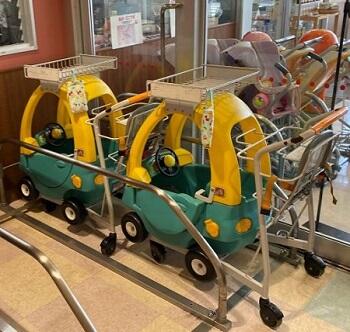 お店の工夫です。マイバスケットとは? 幼い子どもたちのための「ちびっこひろば」、もちろん、リサイクルコーナー