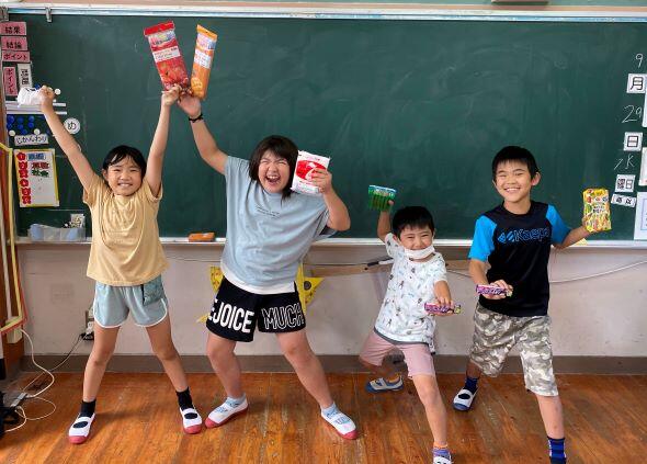 その③:中学生がやって来ました!上の写真は手前の小学生のそれぞれのお兄ちゃんです。小学生はうれしそうですね。(^^)