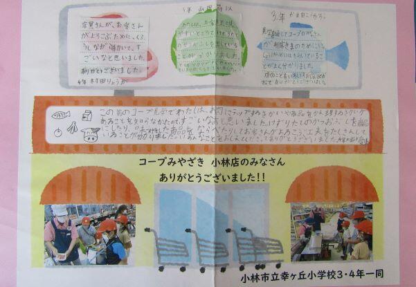 先日、校外学習でコープに行きましたが、そのお礼状を書きました。そして、コープに送りました。
