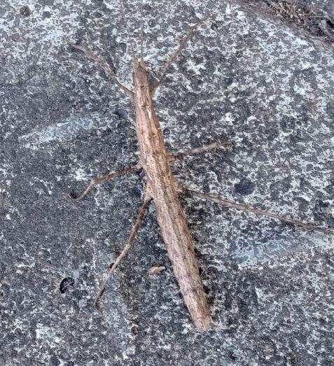 朝のボランティア清掃の時に見つけた昆虫を2つご紹介しましょう。左側はナナフシです。見たことありますか?