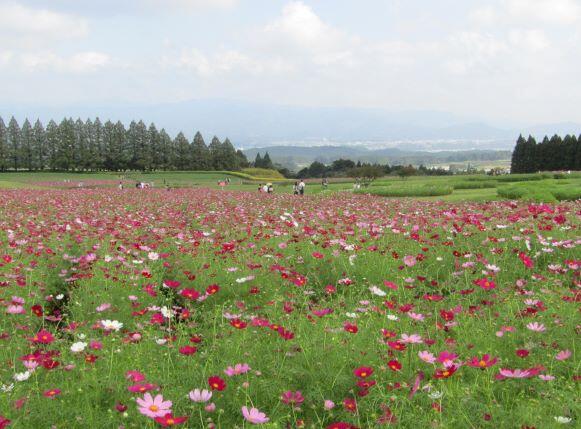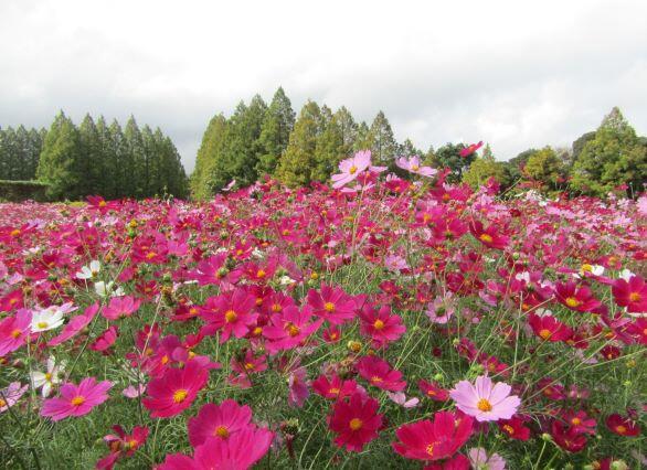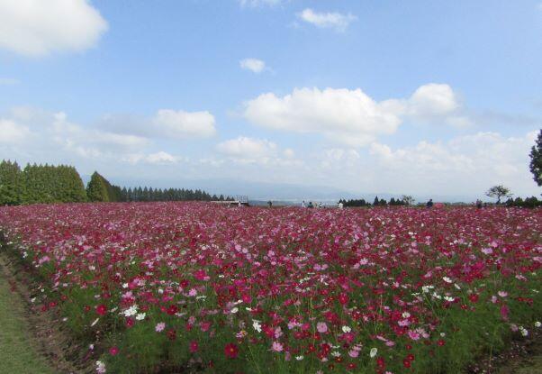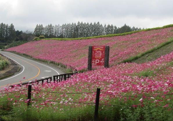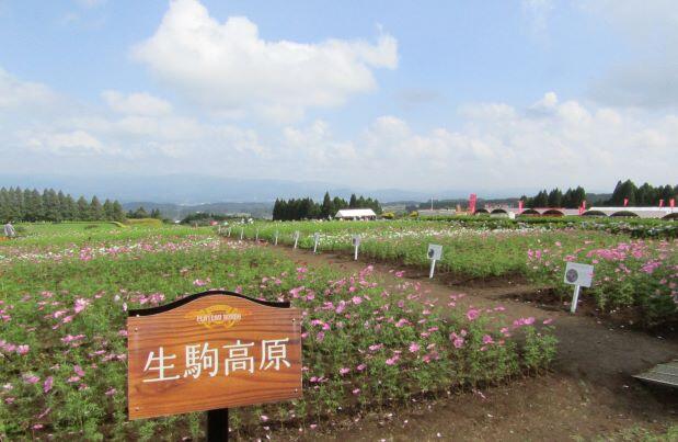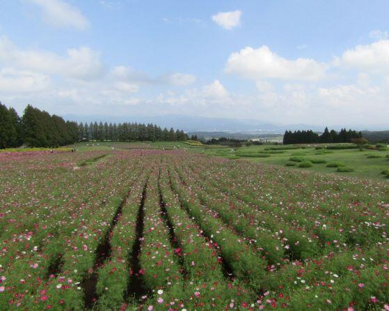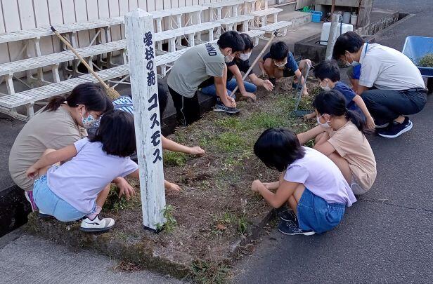 本校の花はコスモスです。ここに、コスモスを植えます。学校の近くの生駒高原もそろそろコスモスの時期になります。