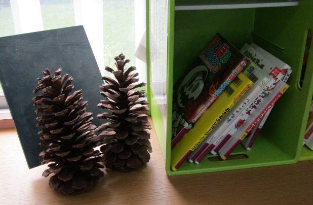 難しいようですね。(>_<) 頑張りましょう!ふと、窓際を見ると、な~んと!こんなにおっきな松ぼっくりがぁ~!