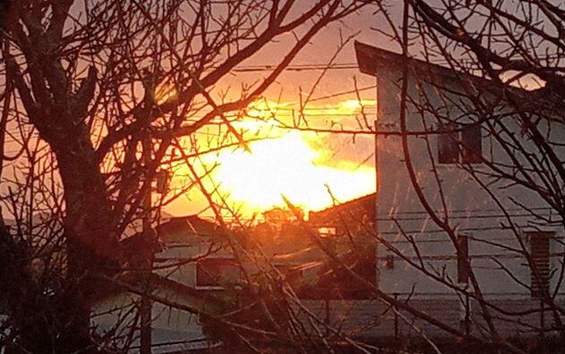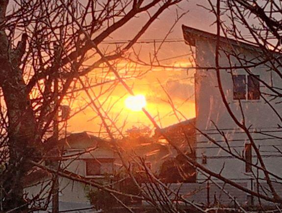 この日の朝の幸ヶ丘三岳です。左側の夷守岳には雲が朝日を遮って暗くなっていますが、右側の韓国岳、甑岳には朝日があたり、明るくなっています。こんな三岳もきれいですね。一方、反対側はうろこ雲?が・・・。天気は下り坂になるようですね。