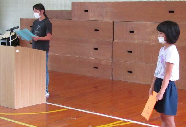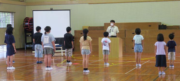 生徒指導主事の先生からのお話は、1学期、あいさつが良くなったことや、あいさつについて頑張っている子どもたちの
