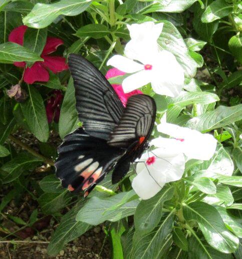 たてのしま模様はなく、ヒョウの文様だけだそうです。サツマイモの畑で飛んでいました。サツマイモの葉っぱは