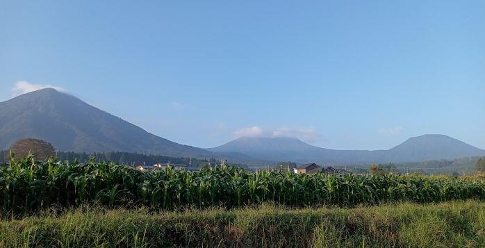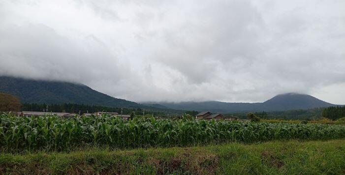 さて、この日の朝の高千穂峰と幸ヶ丘三岳です。曇ってはいますが、雲はかかっておらず、はっきりと見えました。これを撮った後から雨になりました。