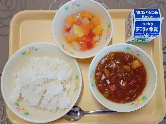 10月10日(日)は「目の愛護デー」です。秋休み中なので、この日の給食が目の愛護デーに関するメニューでした。