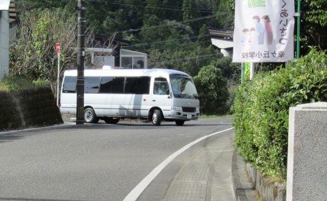 最後に集合写真を撮りました。みんな、いい顔をしていますね。中学生や先生のお見送りです。ありがとうございました。