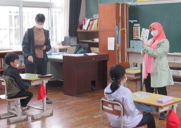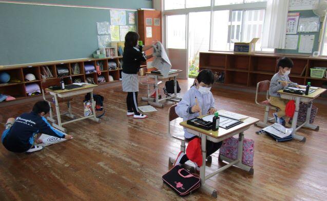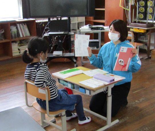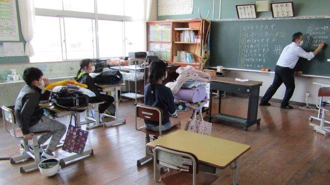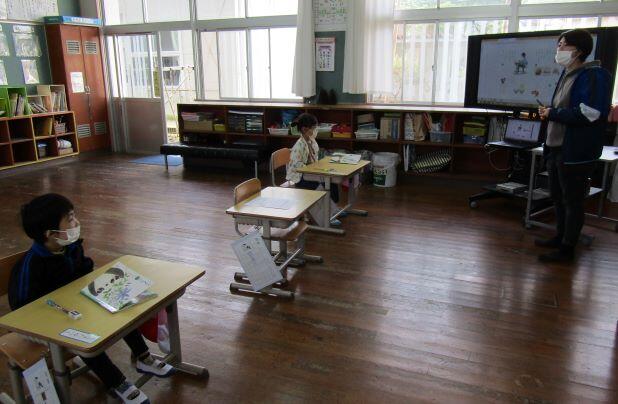 学級活動の様子です。2年生は一人ですから、担任の先生とマンツーマンでした。3・4年生は新しく転入された先生と、
