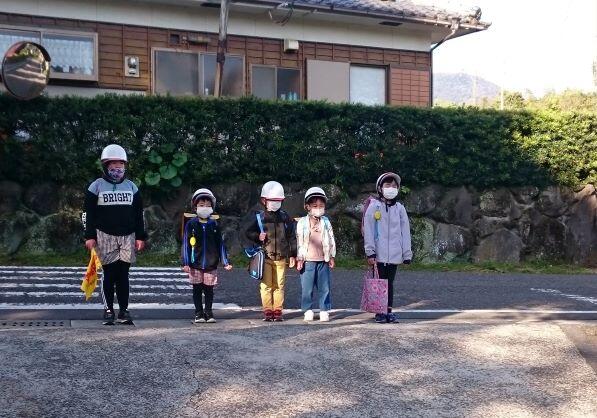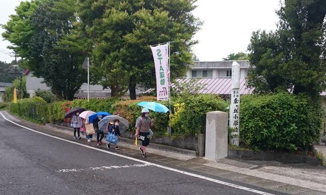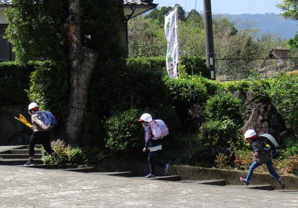 そんな中を1年生は前後を上級生に挟まれて、元気に登校してきました。校門のところで、一礼をします。