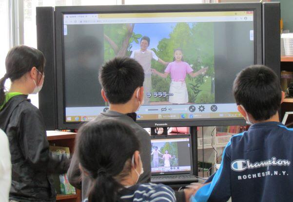 まずは教室で、歌うときの注意がありました。出だしが肝心ですよ!そして、映像を見ながら、練習しました。