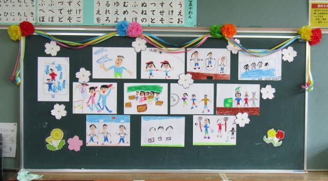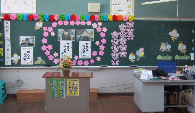 前の黒板の飾り付けもできました!きれいで、可愛いですね。(^_^) 新1年生の子どもたちや保護者のみなさんは