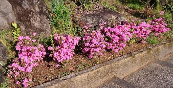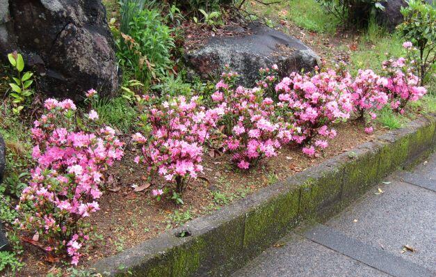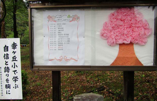 校門の掲示板も4月行事が貼ってありました。新学期のスタートです。2月に植えたツツジも花を咲かせました。
