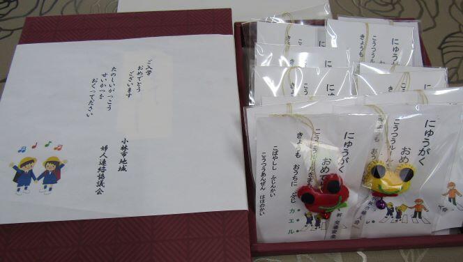 下の写真のような、1年生への贈り物がたくさん届きましたので、ご紹介します。