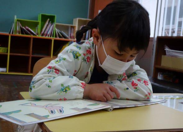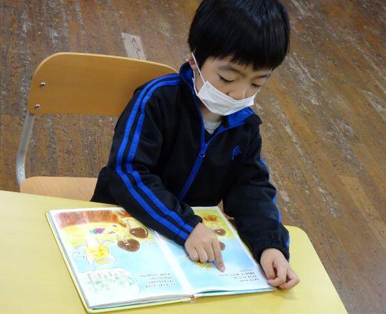 学校生活が本格的に始まって、3日、1年生はどんな様子でしょうか? 読書をしていました。指で押さえながら読んで