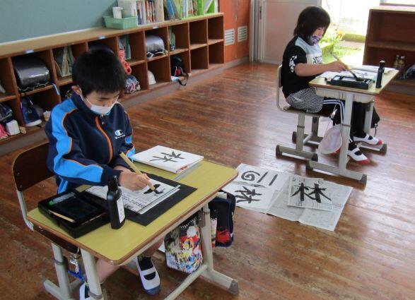 咲きました。子どもたちも元気に登校しています。さて、3・4年生の書写の授業をのぞいてみました。3年生にとっては