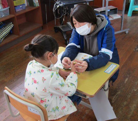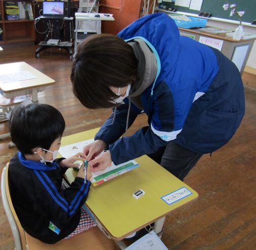 いました。1年生の聞く姿勢もバッチリです!(^_^)v 先生からも手取り足取り、習っていました。