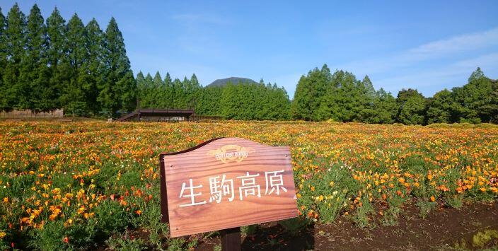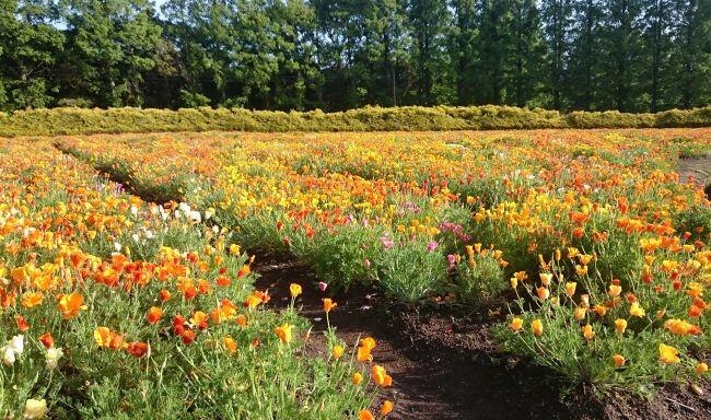 きました。生駒高原です。朝のお日様がまぶしかったです!色とりどりのポピーが咲いていました。