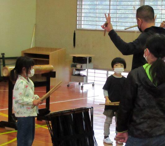 子どもたちは出ずっぱりになりそうです。1年生は初めての太鼓です。入学前に少し教えてもらいましたが、この日が