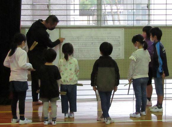 初めて太鼓をたたく日になりました。頑張ろうね!(^_^)v