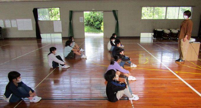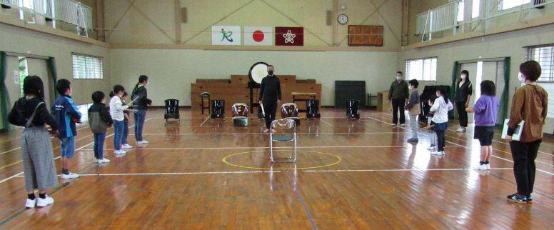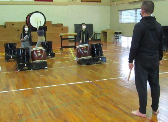 この日は今年度初めての「太鼓練習」でした。今年度も宮崎市内から講師の方に来校してもらっての練習となります。