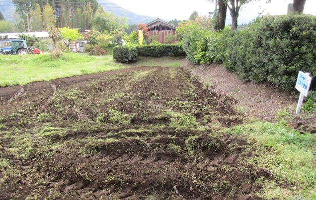 こども農園です。5月25日(火)にサツマイモの苗植えをします。4月に草ぼーぼーの農園を耕してくださいましたが、