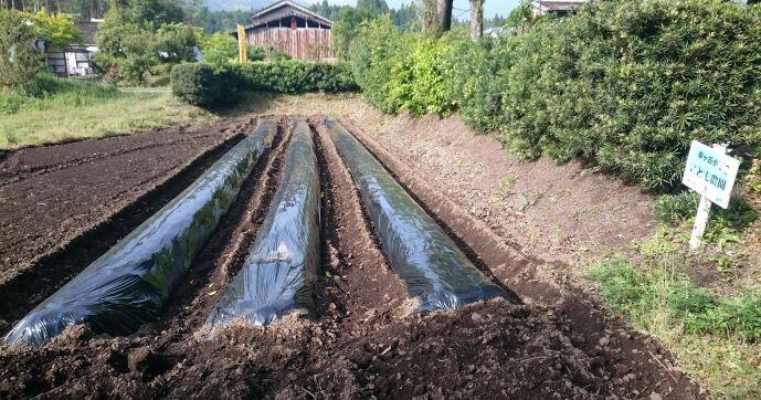 今回は休日にもかかわらず、マルチを張ってくださいました!ありがとうございます。25日は一生懸命、苗を植えます!