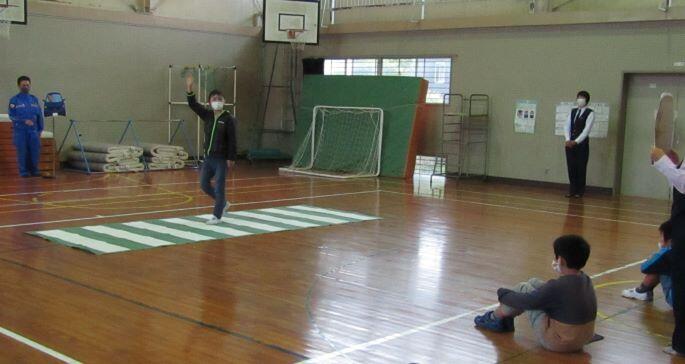 逆上がりができますか?の質問でした!(^_^;) 続いて、横断歩道の渡り方の説明と実演でした。