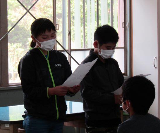 上の2枚は「体育・保健・給食委員会」のメンバー3名です。下の2枚は「学習委員会」のメンバー2名です。