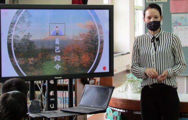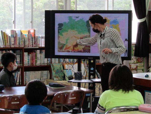 月曜日(17日)は国際交流の時間があって、国際交流員のシュルト先生が来校されて、交流授業をします。その中で、