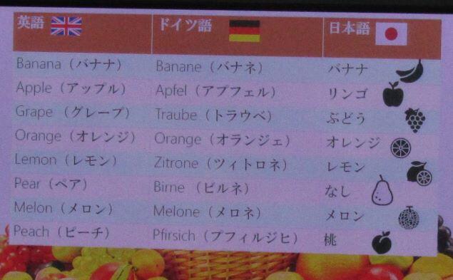 次の時間のゲームに備えて、くだものの名前をドイツ語で教えていただきました。(^_^)ということはゲームは、