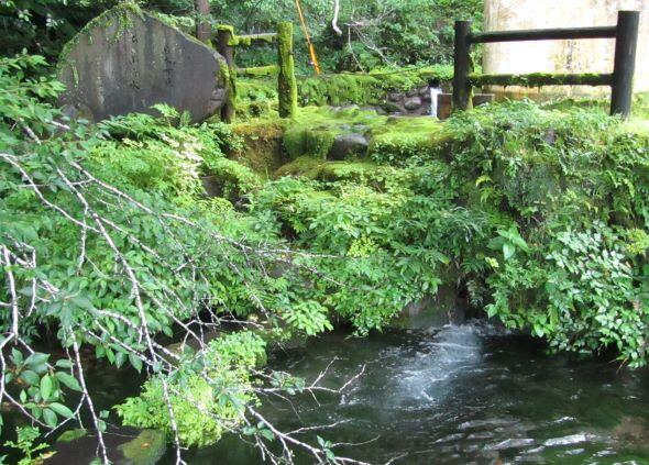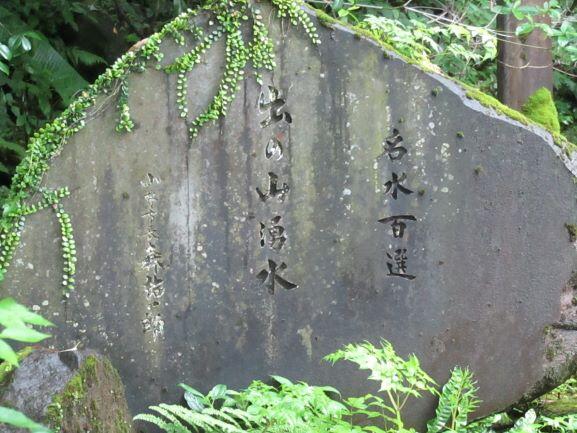 時間があったので、近くの水源地を見に行きました。名水百選の出の山湧水です。碑の近くから水がわき出ていました。