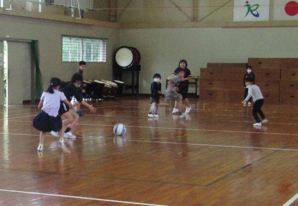 残念ながら、次の運動公園広場には行けませんでした。学校に戻り、体育館でみんなでドッヂボールをしたり、お弁当の後、