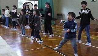 次にやってきたのは小学生たち。ジェンカで登場。歴史の年号を覚えているところです。
