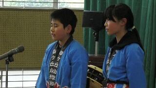 修了式では、5年生が代表でこの1年でがんばったことや6年生でがんばりたいことなどを発表しました。