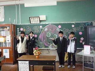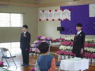 そのあとに、校長先生の話があり、校歌を歌って式が終了しました。