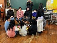 【2月25日】 本年度最後の中学生によるオンライン読み聞かせがありました。本を読んでくれた2人のうちの1人は、中学1年生の本校出身の子です。画面に映った先輩の姿を見て、みんな嬉しそうでした。楽しい本を上手に読み聞かせしてくれてとても楽しい時間でした。