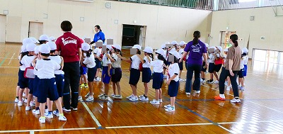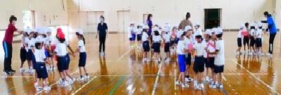 交流学習、後半の1時間は、みんなで体育の学習をしました。