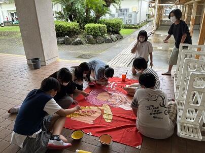 運動会の全体練習をしました。1回目は開・閉会式の並び方や準備運動等です。各団のリーダーが団員を整列させる姿も見られました。昼休みは、リーダーの応援練習や団旗の制作が進められています。