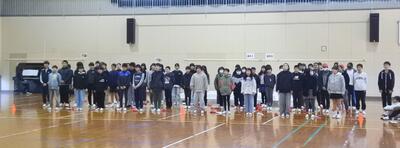チーム分けをして、チーム毎に並んだらまずは、かけ声です。先頭に