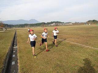 寒い中ですが、子どもたちは寒さに負けず、一生懸命走っています。