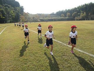 今年は、コースが芝生の中で行います。子どもたちは、コースを確かめながら、本番のようにがんばって走りました。