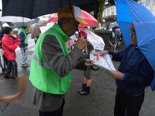 今日は22日ということで、あいさ2の日でした。雨の中、地域のボランティアの方に来ていただき、あいさつをしていただきました。