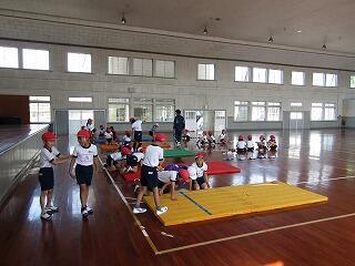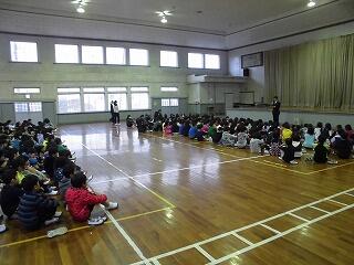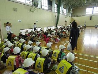 帰りの会終了後に体育館に集まり、先生からお話があった後下校を行いました。