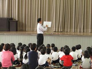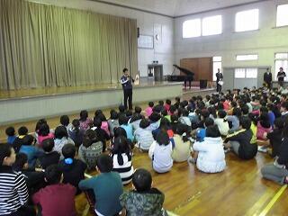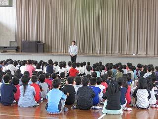 ほかにもあいさつの大切さや、笑顔で話すことの大切さをお話いただき、子どもたちも真剣に耳をかたむけていました。